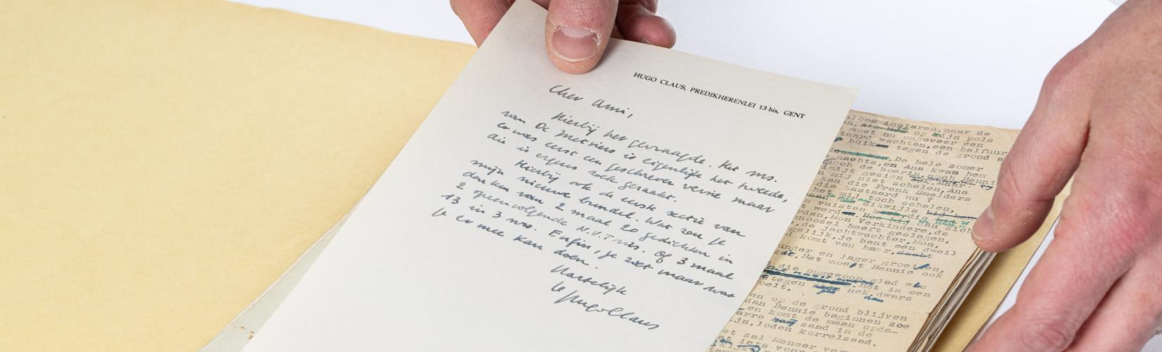 Claus debuteerde in 1950 als romanschrijver met De Metsiers, een boek waarover in het Clausarchief zo goed als niets bewaard bleef. Drukproeven waren al te vinden in het archief van het Nieuw Vlaams Tijdschrift en een getypte versie uit 1948, nog met de titel De eendenjacht, bleef bewaard in het archief van Jan Walravens. Het typoscript dat nu aan het archief werd toegevoegd, bevat de tekst uit 1948 met talloze handgeschreven correcties en meerdere nieuwe passages. Claus stuurde dit pakket in 1961 naar Ivo Michiels en schreef in de begeleidende brief: 'Het ms. van De Metsiers is eigenlijk het tweede, er was eerst een geschreven versie, maar die is ergens zoek geraakt'. Op het mapje had hij genoteerd: ‘1e getypte versie’, het kon alleen maar bijdragen aan de mythevorming over zijn debuut. Het typoscript laat in elk geval toe om nieuw onderzoek naar Claus’ debuutroman te verrichten.
