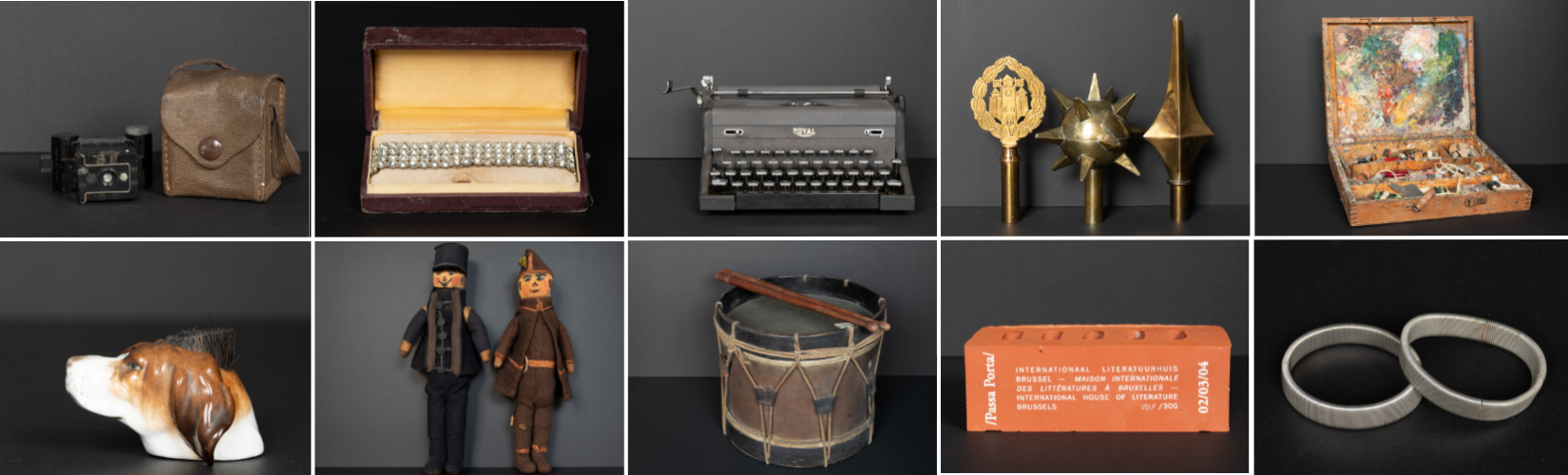 Hondborsteltje: Frans Van Cuyck (1857-1952) was leraar en schreef romans, toneelstukken en novellen. Hij was een verdediger van de nieuwe stroming van het modernisme. In zijn archief duiken naast brieven, documenten, handschriften en foto’s, een aantal banale objecten op, zoals deze porseleinen hondenkop met borsteltje van dierenhaar op het hoofd.