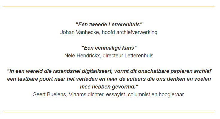 Ben je onderzoeker, leerkracht of gewoon geïnteresseerd in deze bijzondere collectie? Je kan de collectie raadplegen via het collectieplatform van het Letterenhuis.