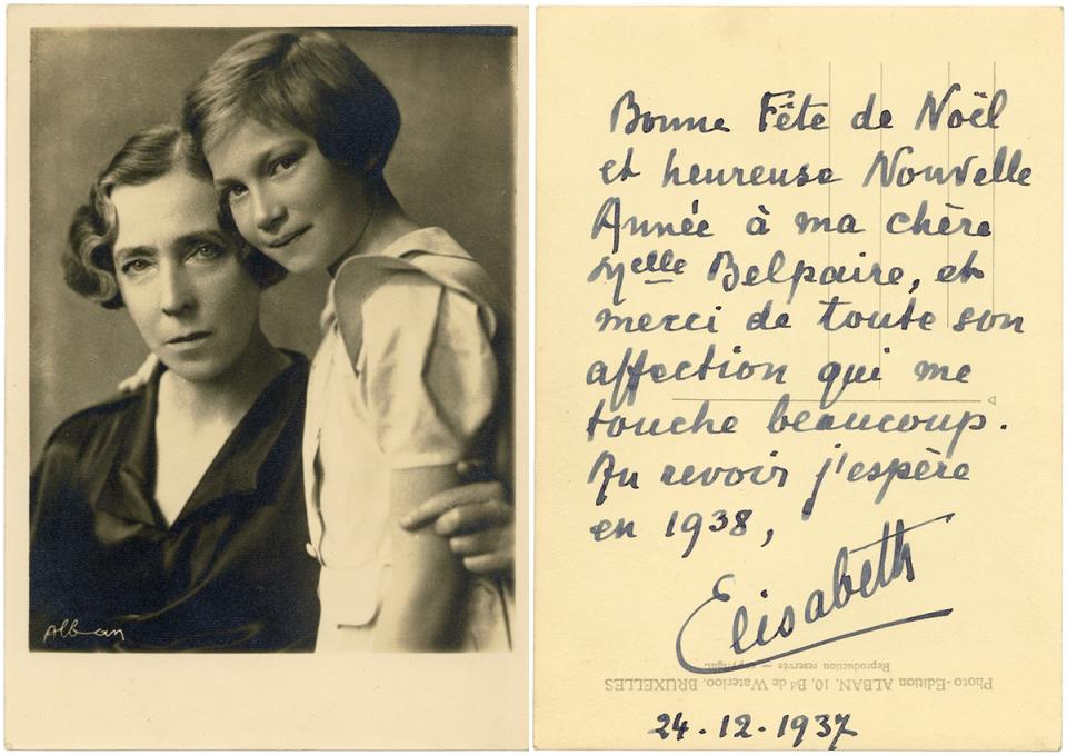 Onderstaand briefje van de Belgische koningin-moeder Elisabeth (Elisabeth Gabriele Valérie Marie, 1876-1965) aan de Vlaamse emancipator, schrijfster en mecenas Marie-Elisabeth Belpaire ('Mamieke', 1853-1948) maakt deel uit van een pakket van circa honderd in het Frans gestelde brieven, briefkaarten, telegrammen alsmede enkele foto's afkomstig van Elisabeth (en haar secretariaat) en gericht aan Belpaire uit de jaren 1918-1948.