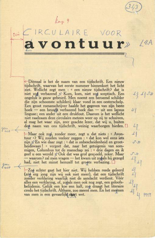 Paul van Ostaijen schreef 'Circulaire voor avontuur' voor het tijdschrift Avontuur waarvan hij in de redactie zat. Het tijdschrift werd opgericht toen hij in Miavoye-Anthée verbleef. Met dit tijdschrift wilden Van Ostaijen en de overige leden van de redactie een vrij en open literair blad creëren waarin verschillende stromingen en vormen van literatuur naast elkaar gepubliceerd konden worden. Het vroegtijdige overlijden van Van Ostaijen betekende het einde van het tijdschrift.